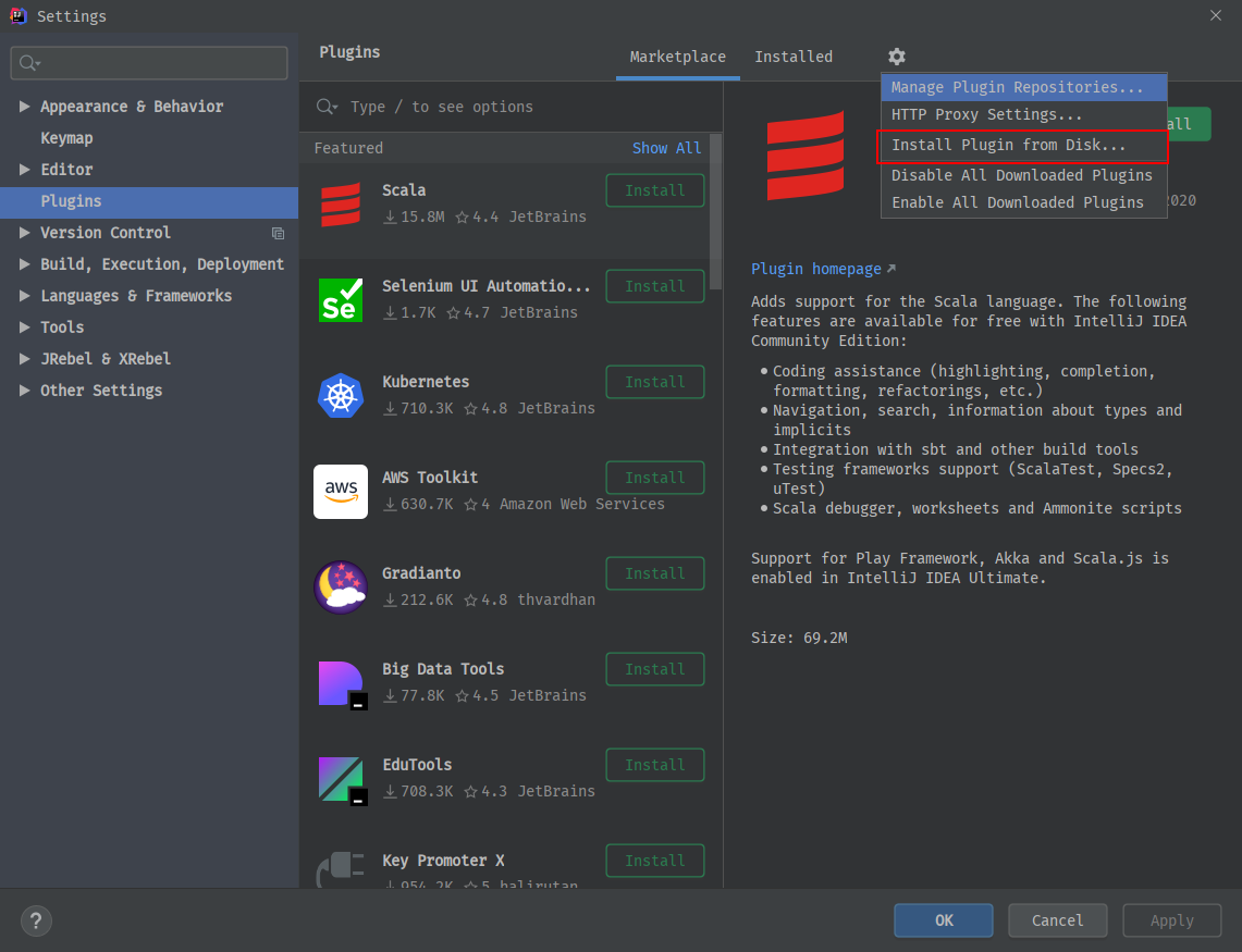 6. 然后直接下载,下载完成之后可以直接拖动文件到打开的idea中,也可以使用使用File > Settings > Plugins > 安装本地插件包,重启,然后就可以使用了