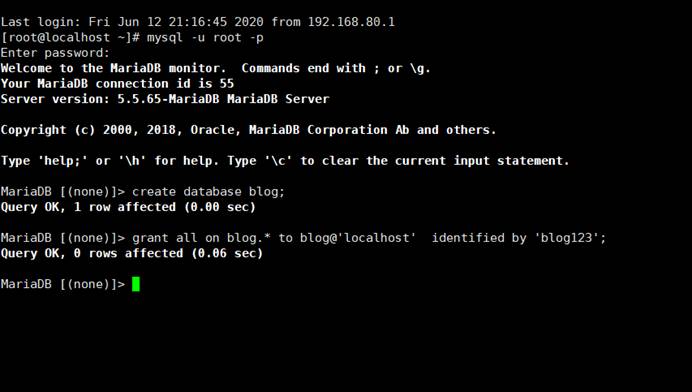ping www.qq.com yum install httpd httpd-devel httpd-tools -y 开机自启:systemctl enable httpd 启动服务: systemctl start httpd yum install mariadb mariadb-devel mariadb-server -y 开机自启:systemctl enable mariadb 启动服务: systemctl start mariadb yum install php php-mysql php-devel -y 停止firewall:systemctl stop firewalld.service 禁止firewall开机启动:systemctl disable firewalld.service 关闭SELinux: ①临时关闭: ##设置SELinux 成为permissive模式 ##setenforce 1 设置SELinux 成为enforcing模式 setenforce 0 ②永久关闭: vi /etc/selinux/config 将SELINUX=enforcing改为SELINUX=disabled 设置后需要重启才能生效 [root@dhcp ~]# mysql -uroot -p Enter password: Welcome to the MariaDB monitor. Commands end with ; or g. Your MariaDB connection id is 2 Server version: 5.5.60-MariaDB MariaDB Server Copyright (c) 2000, 2018, Oracle, MariaDB Corporation Ab and others. Type 'help;' or 'h' for help. Type 'c' to clear the current input statement. MariaDB [(none)]> show databases; +--------------------+ | Database | +--------------------+ | information_schema | | auth | | mysql | | performance_schema | | test | | zabbix | +--------------------+ 6 rows in set (0.02 sec) MariaDB [(none)]> create database bbs charset=utf8; Query OK, 1 row affected (0.00 sec) MariaDB [(none)]> grant all on bbs.* to bbs@'localhost' identified by 'bbs123'; Query OK, 0 rows affected (0.02 sec) MariaDB [(none)]> vi /var/www/html/test.php <?php phpinfo(); ?> ======= systemctl restart httpd