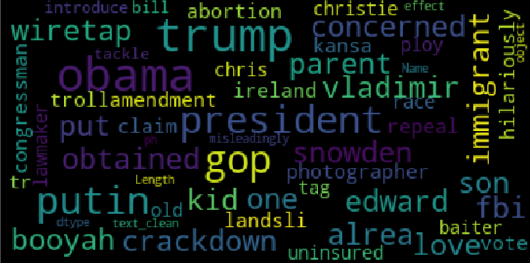 wc = wordcloud.WordCloud(background_color='black', max_words=100, max_font_size=35) wc = wc.generate(str(corpus)) fig = plt.figure(num=1) plt.axis('off') plt.imshow(wc, cmap=None) plt.show()
