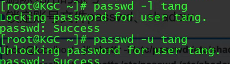 用usermod -L 锁定账户 ;usermod -U 解锁账户