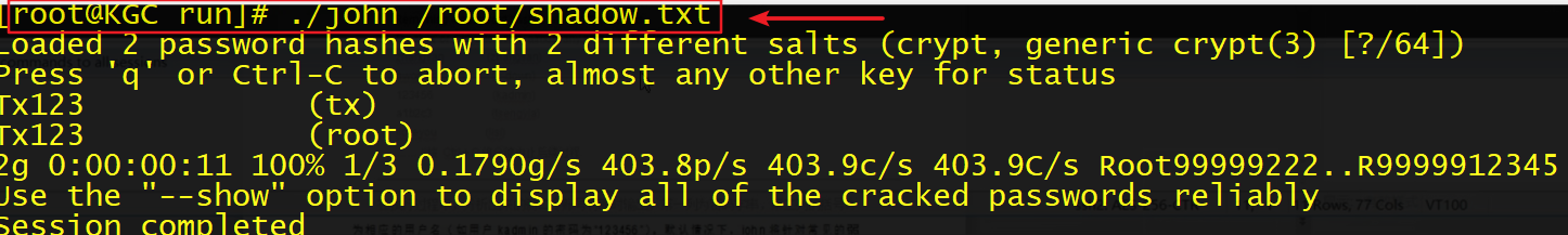 输入 vi john.opt会查看刚才root和tx用户密码的密文