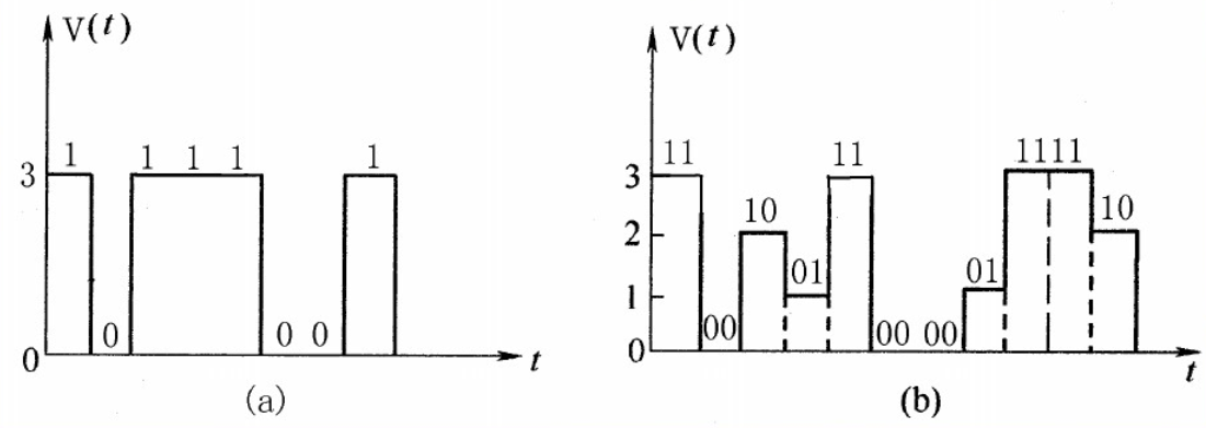 一名菜鸟学习编程技术,记录所学知识并给大家,希望大家多多支持。 数字信号指**自变量是离散的、因变量也是离散的信号,这种信号的自变量用整数**表示,因变量用有限数字中的一个数字来表示。在计算机中,数字信号的大小常用有限位的二进制数表示,例如,字长为2位的二进制数可表示4种数字信号,它们是00、01、10和11 。 由于数字信号是用两种物理状态来表示0和1的,故其抵抗材料本身干扰和环境干扰的能力都比模拟信号强很多; 在数字电路中,由于数字信号只有0、1两个状态,它的值是通过中央值来判断的,在中央值以下规定为0,以上规定为1, 所以即使混人了其他干扰信号,只要干扰信号的值不超过闽值范围,就可以再现出原来的信号。即使因干扰信号的值超过阂值范围而出现了误码,只要采用一定的编 码技术,也很容易将出错的信号检测出来并加以纠正因此,与模拟信号相比,数字信号在传输过程中具有更高的抗干扰能力,更远的传输距离,且失真幅度小。 数 字信号在传输过程中不仅具有较高的抗干扰性,还可以通过压缩,占用较少的带宽,实现在相同的带宽内传输更多、更高音频、视频等数字信号的效果。此外,数字信号还可用半导体存储器来存储,并可直接用于计算机处理。若将电话、传真、电视所处理的音频、文本、视频等数据及其他各种不同形式的信号都转换成数字脉冲 来传输,还有利于组成统一的通信网。 从原始信号转换到数字信号一般要经地抽样、量化和编码这样三个过程。 话音信号是模拟信号,它不仅在幅度取值上是连续的,而且在时间上也是连续的。所谓抽样就是每隔一定的时间间隔T,抽取话音信号的一个瞬时幅度值(抽样值),抽样后所得出的一系列在时间上离散的抽样值称为样值序列。抽样后的样值序列在时间上是离散的,可将各个抽样值经过量化、编码变换成二进制数字信号。理论和实践证明,只要抽样脉冲频率f≥2fm (fm是话音信号的最高频率),则抽样后的样值序列可不失真地还原成原来的话音信号。 例如,一路电话信号的频带为300~3400Hz,fm=3400Hz,则抽样频率f≥2×3400=6800Hz。如按6800Hz的抽样频率对300~3400Hz的电话信号抽样,则抽样后的样值序列可不失真地还原成原来的话音信号,话音信号的抽样频率通常取8000Hz。 抽样把模拟信号变成了时间上离散的脉冲信号,但脉冲的幅度仍然是模拟的,还必须进行离散化处理,才能最终用数码来表示。这就要对幅值进行舍零取整的处理,这个过程称为量化。量化有两种方式,量化方式中,取整时只舍不入,即0~1伏间的所有输入电压都输出0伏,1~2伏间所有输入电压都输出1伏等。采用这种量化方式,输入电压总是大于输出电压,因此产生的量化误差总是正的,最大量化误差等于两个相邻量化级的间隔Δ。量化方式在取整时有舍有入,即0~0.5伏间的输入电压都输出0伏,0.5~1?5伏间的输出电压都输出1伏等等。采用这种量化方式量化误差有正有负,量化误差的绝对值最大为Δ/2。因此,采用有舍有入法进行量化,误差较小。 实际信号可以看成量化输出信号与量化误差之和,因此只用量化输出信号来代替原信号就会有失真。一般说来,可以把量化误差的幅度概率分布看成在-Δ/2~+Δ/2之间的均匀分布。可以证明,量化失真功率?, 即与最小量化间隔的平方成正比。最小量化间隔越小,失真就越小。最小量化间隔越小,用来表示一定幅度的模拟信号时所需要的量化级数就越多,因此处理和传输 就越复杂。所以,量化既要尽量减少量化级数,又要使量化失真看不出来。一般都用一个二进制数来表示某一量化级数,经过传输在接收端再按照这个二进制数来恢 复原信号的幅值。所谓量化比特数是指要区分所有量化级所需几位二进制数。例如,有8个量化级,那么可用三位二进制数来区分,因为,称8个量化级的量化为3比特量化。8比特量化则是指共有个量化级的量化。 抽样、量化后的信号还不是数字信号,需要把它转换成数字编码脉冲,这一过程称为编码。最简单的编码方式是二进制编码。具体说来,就是用n比 特二进制码来表示已经量化了的样值,每个二进制数对应一个量化值,然后把它们排列,得到由二值脉冲组成的数字信息流。编码过程在接收端,可以按所收到的信 息重新组成原来的样值,再经过低通滤波器恢复原信号。用这样方式组成的脉冲串的频率等于抽样频率与量化比特数的积,称为所传输数字信号的数码率。显然,抽 样频率越高,量化比特数越大,数码率就越高,所需要的传输带宽就越宽。除了上述的自然二进制码,还有其他形式的二进制码,如格雷码和折叠二进制码等。 在通信理论中,编码分为信源编码和信道编码两大类。所谓信源编码是指将信号源中多余的信息除去,形成一个适合用来传输的信号。为了抑制信道噪声对信号的干 扰,往往还需要对信号进行再编码,编成在接收端不易为干扰所弄错的形式,这称为信道编码。为了对付干扰,必须花费更多的时间,传送一些多余的重复信号,从 而占用了更多频带,这是通信理论中的一条基本原理。一、数字信号