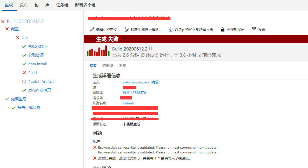 最近打包vue项目时,执行npm run build,会提示:caniuse-lite is outdated. Please run next command `npm update`,其实并不影响打包,可以正常访问项目网站。 但是如果使用了tfs的自动化发布以及编译,那就不一样了,会报错,中止编译生成,如下图: 1、删除项目node_modules文件夹下面:caniuse-lite、browserslist两个文件夹。 2、强制更新caniuse-lite、browserslist版本,在输入的命令后面加上版本号,如果不知道版本号可以网上查找,输入命令: npm install caniuse-lite@1.0.30001081 npm install browserslist@4.12.0 3、即可解决 以下是caniuse-lite、browserslist在线的介绍: browserslist:https://www.npmjs.com/package/browserslist caniuse-lite:https://www.npmjs.com/package/caniuse-lite 一、简述