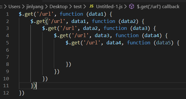 但是在需要连续执行多个异步函数的时候,有的人可能就会说了,还是会有嵌套回调的问题,具体例子如下图: