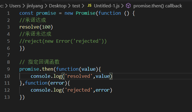 相对于Promise.resolve( )还有一个Promise.rejected( )方法