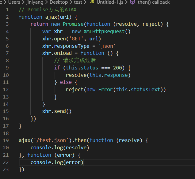 需要注意的是,即便Promise中就算没有任何异步操作,then方法当中指定的回调函数仍然会进入回调队列中进行排队,也就是说必须要等待同步代码全部执行完了then中的方法才会执行。Promise使用案例