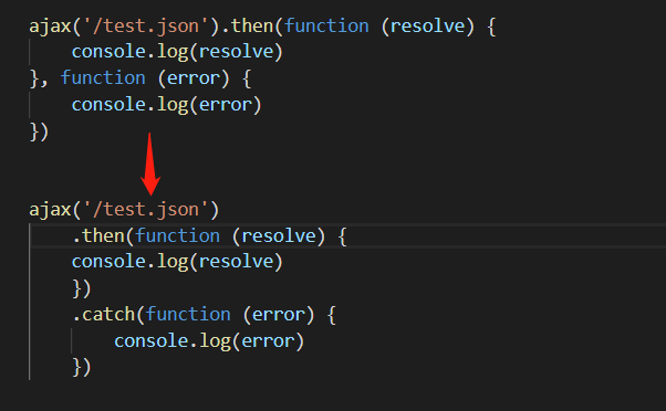 具体在表现上的差异是,假如我们在then方法中返回了一个新的promise,并且中间出现了异常,使用then的第二个回调函数参数,是捕获不到异常的,因为这两个回调函数是给第一个promise的。而catch则可以。