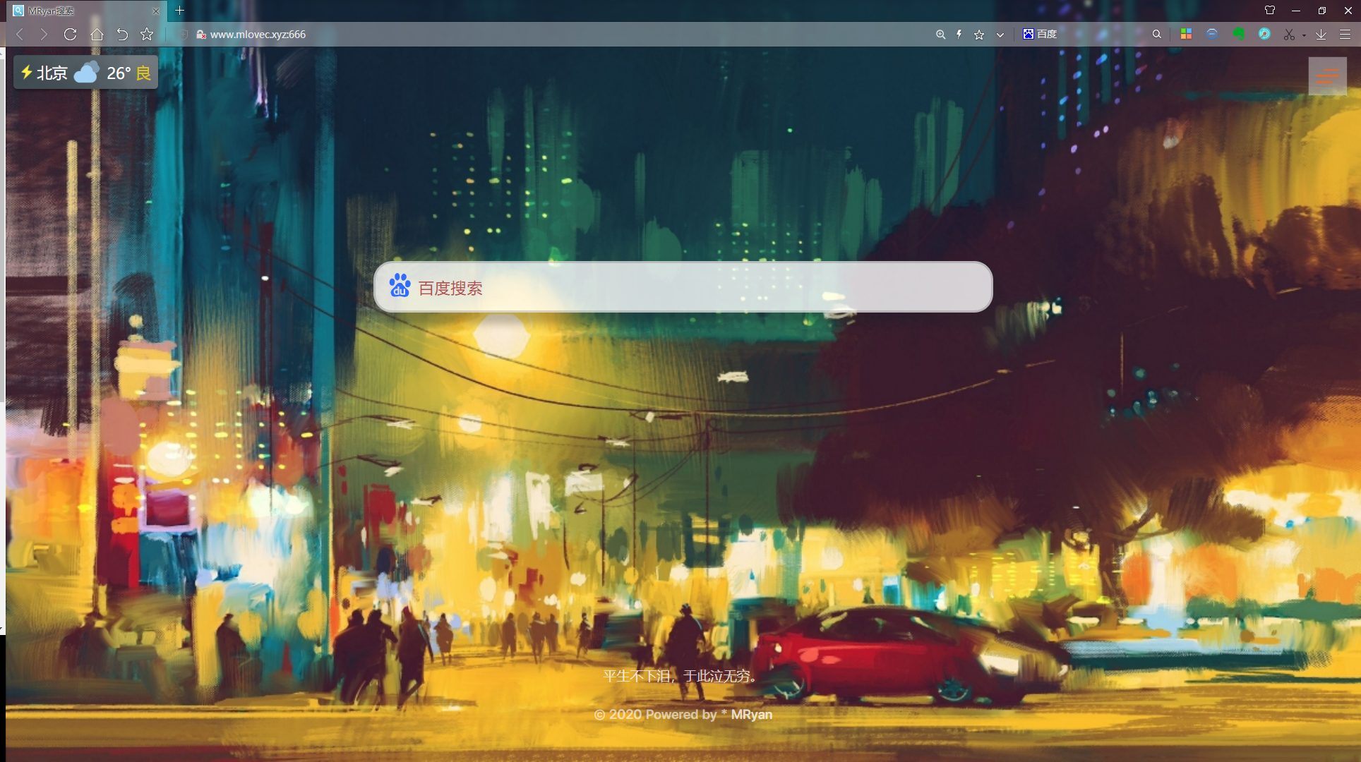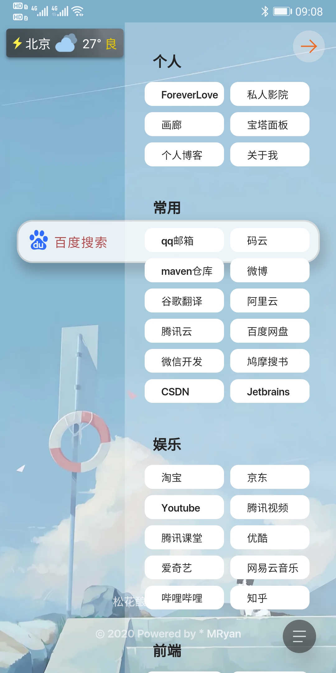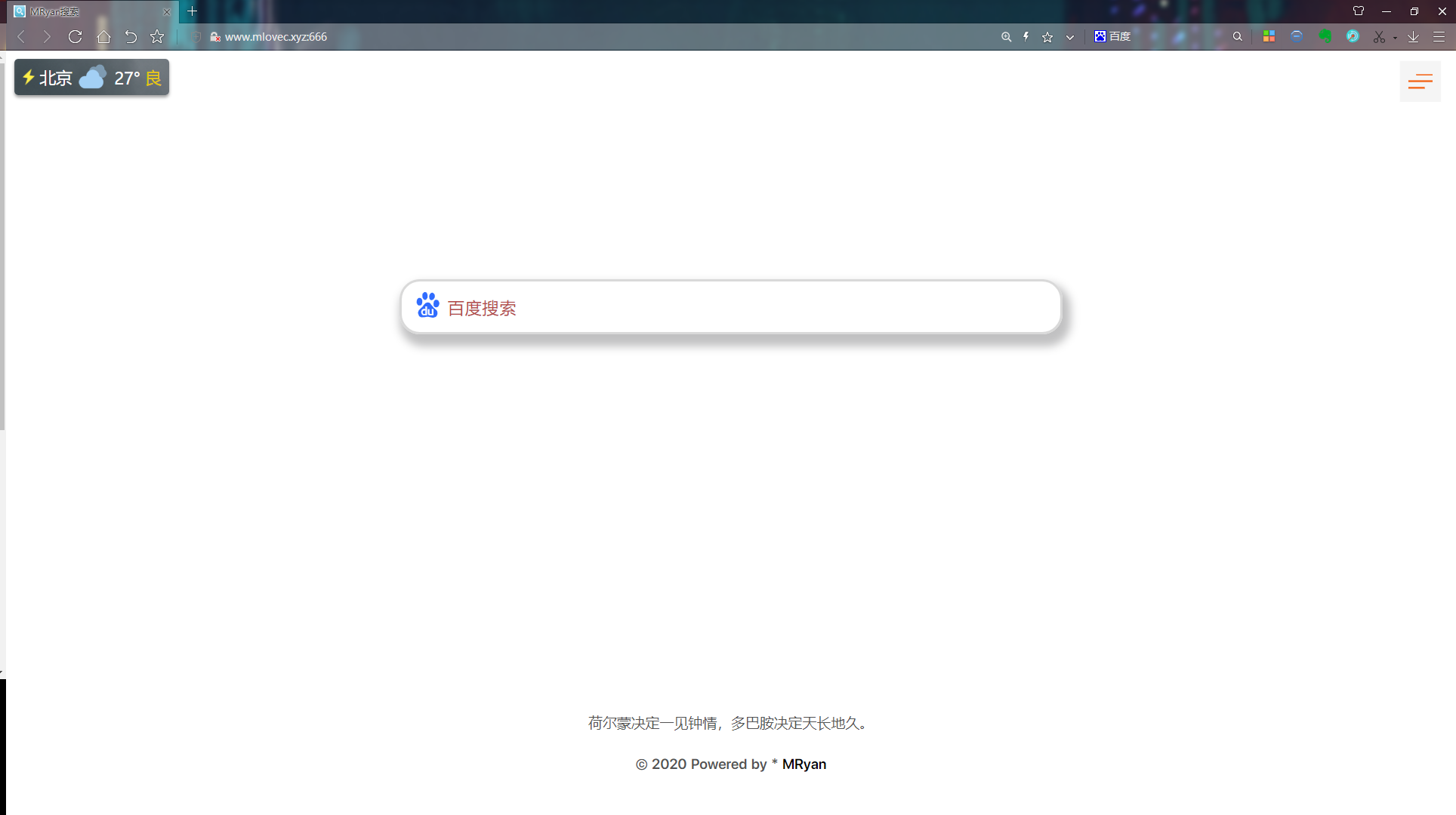 面向搜索引擎编程工具 面向搜索引擎编程那是个玩笑话。 话不多说 看了项目截图你就知道这是个什么工具了。 一个搜索页面,可以设置成浏览器默认主页 自定义夹 多种搜索方式 可自定义背景 适配多端: 直接使用: 如果你嫌麻烦可以直接访问我的地址 将网页设置为主页 自定义: 或者先给个star,然后clone项目 你完全可以自定制成自己想要的样子 当然是我作为一个很菜的程序员的编程之旅。夹太多 而网络夹有浏览器限制,主页广告相当多。那怎么能又美观又使用,于是MySerach出现了。 身为一个后端开发小菜菜,借鉴了网上大神的css设计,在此表示感谢。 仅供学术交流,便于自己便于大家。 如果觉得好用,请给个Star 项目地址:项目链接