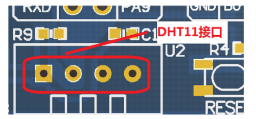 (1)DHT11与stm32的连接较为简单,只需将DHT11传感器四个引脚插入到如图所示的接口就可以通过 stm32f103来读取温度值。