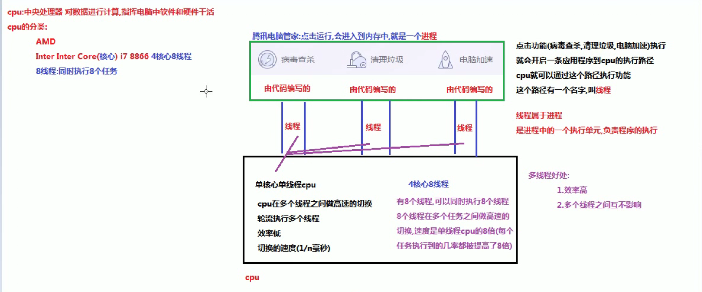 简而言之:一个程序运行后至少有一个进程 , 一个进程中可以包含多个线程