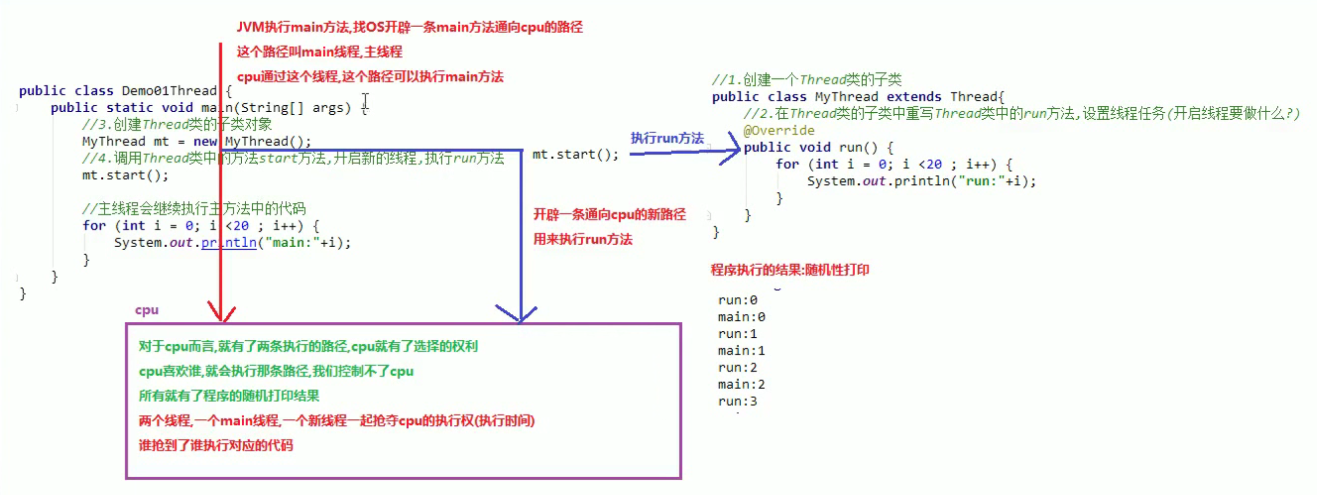 结果是两个线程并发地运行;当前线程(main线程)和另一个线程(创建的新线程,执行其run方法)。
