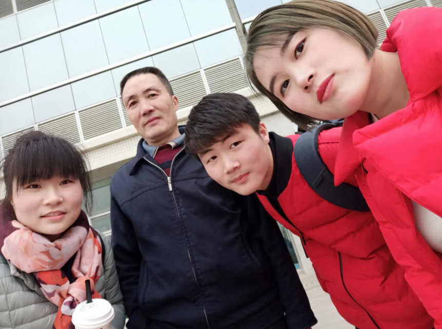 这是爸爸回家时路过西安到我们学校。我和我两个姐姐还有爸爸在学校图书馆前的合照。看到这个照片再去看我初中时的照片发现我的变化还挺大。(我们都长大了,然而爸爸的白头发多了,却依旧是那么的严肃)。