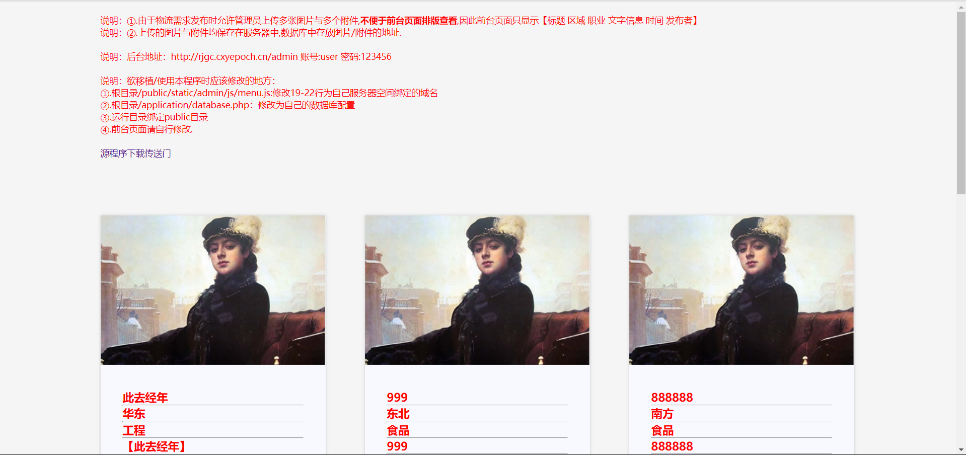 说明:后台地址:https://rjgc.cxyepoch.cn/admin 账号:user 密码:123456