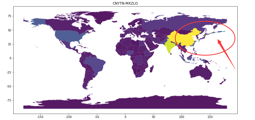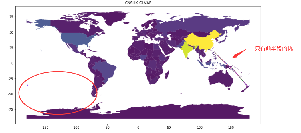 3、对于测试集中的数据,我们观察到Onboard的时间都是第一条记录的时间,但是第一条记录的坐标却和出发港的坐标相差很大,我们猜测test里面的起始数据也有可能被截断了,导致记录并不是真正的初始记录,而是已经行船了一定时间的记录,但是Onboard的时间确实是截断的最早时间。这样说可能有点绕,我们从下图看就一目了然。