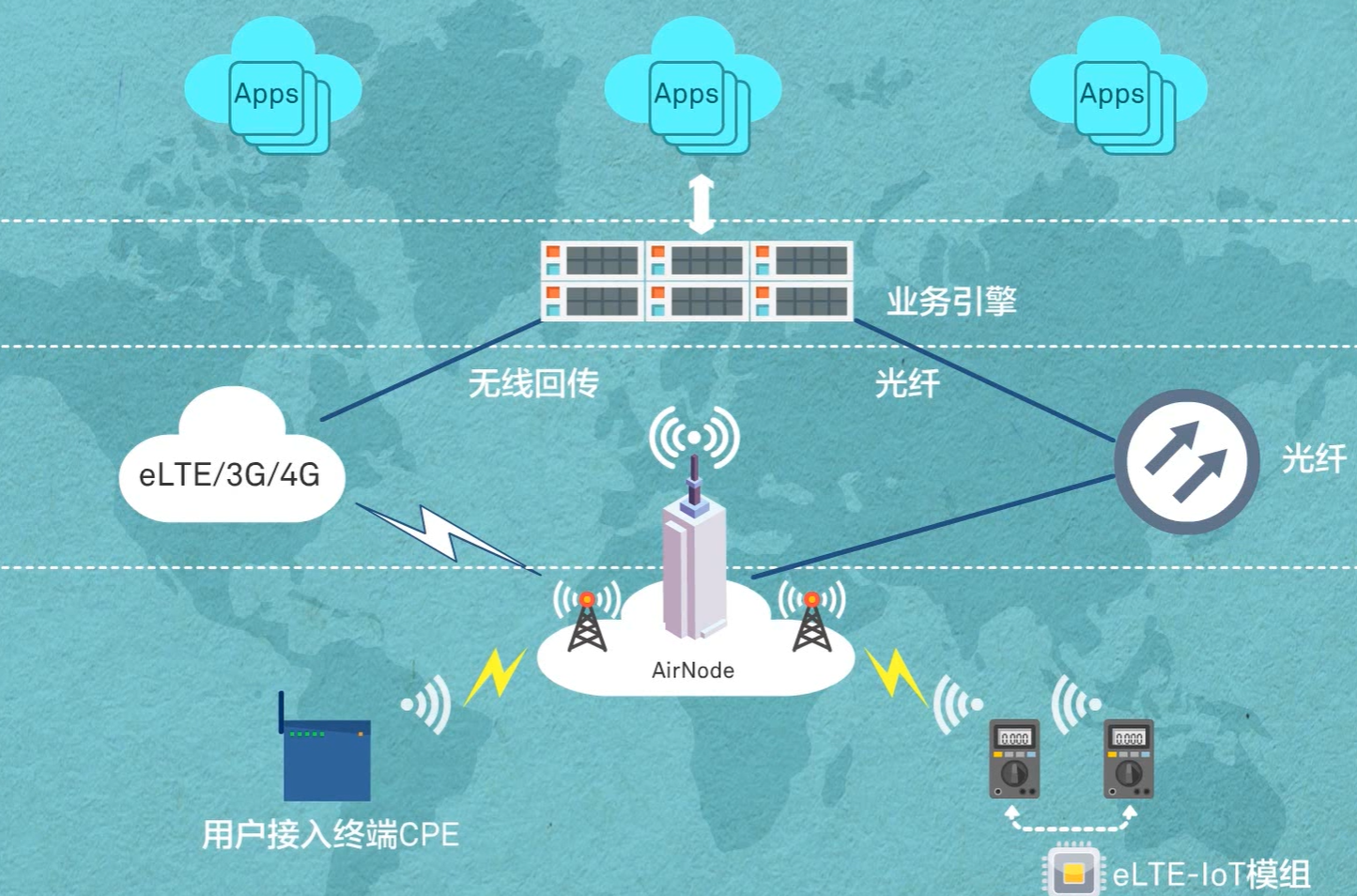 eNodeB基站:作为网络层,负责数据信息的接入、传输、转发。其作为低成本站点解决方案支持更大容量的连接。