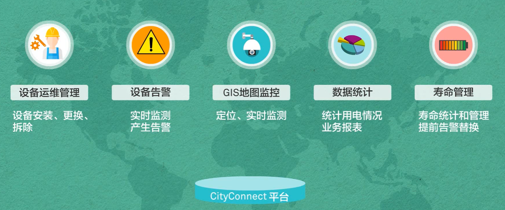 城市照明物联网:感知层、网络层、平台层(EEM平台)、应用层